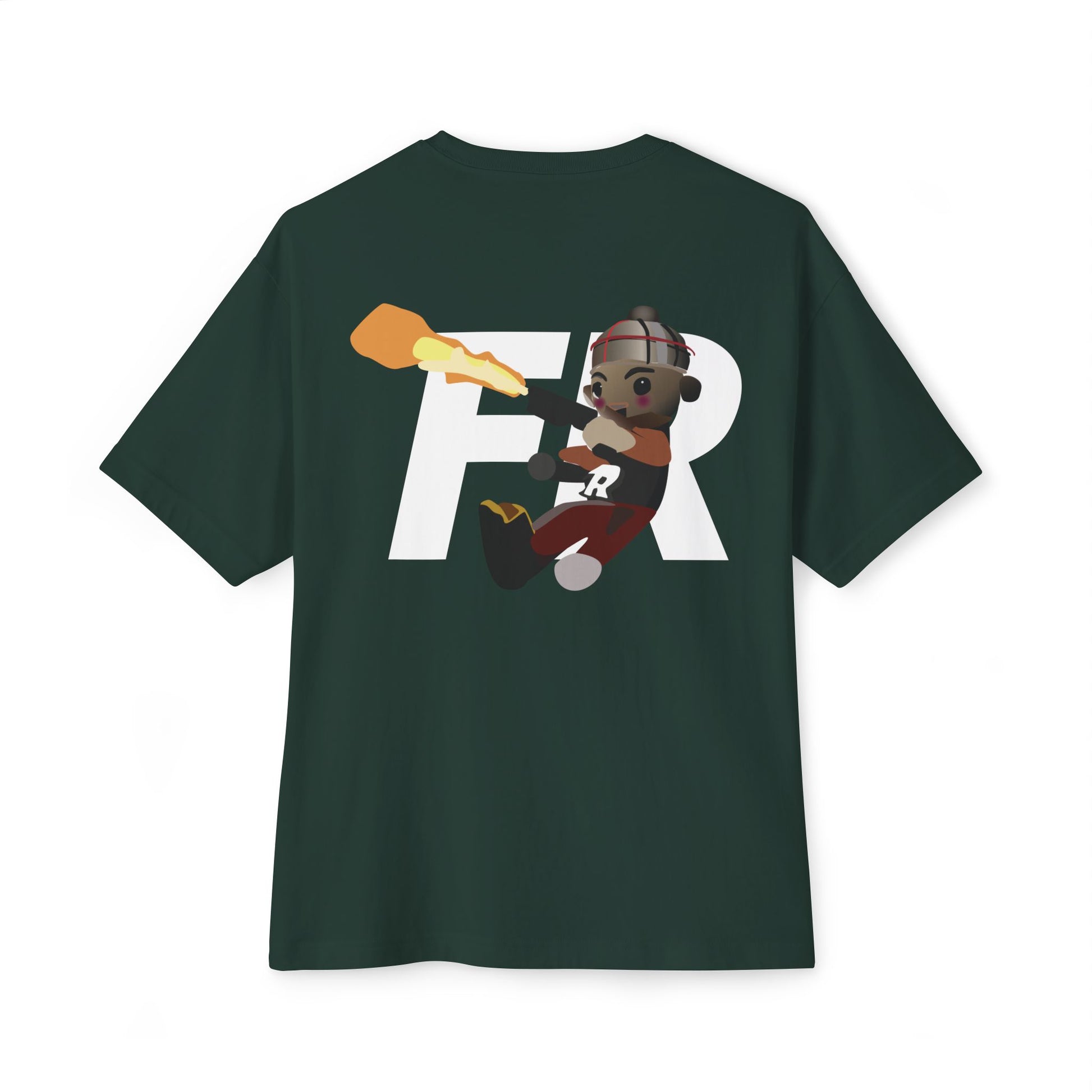 Clean FR logo print on the front + hand-drawn FR doll artwork on the back