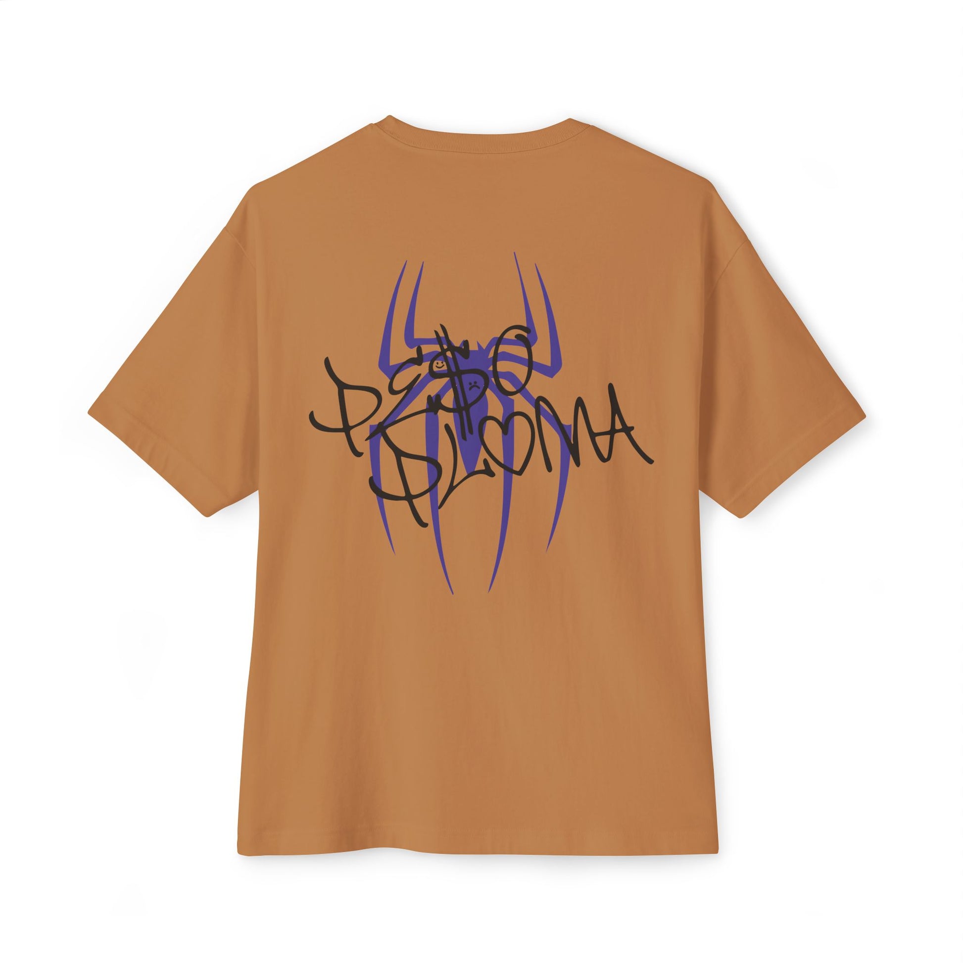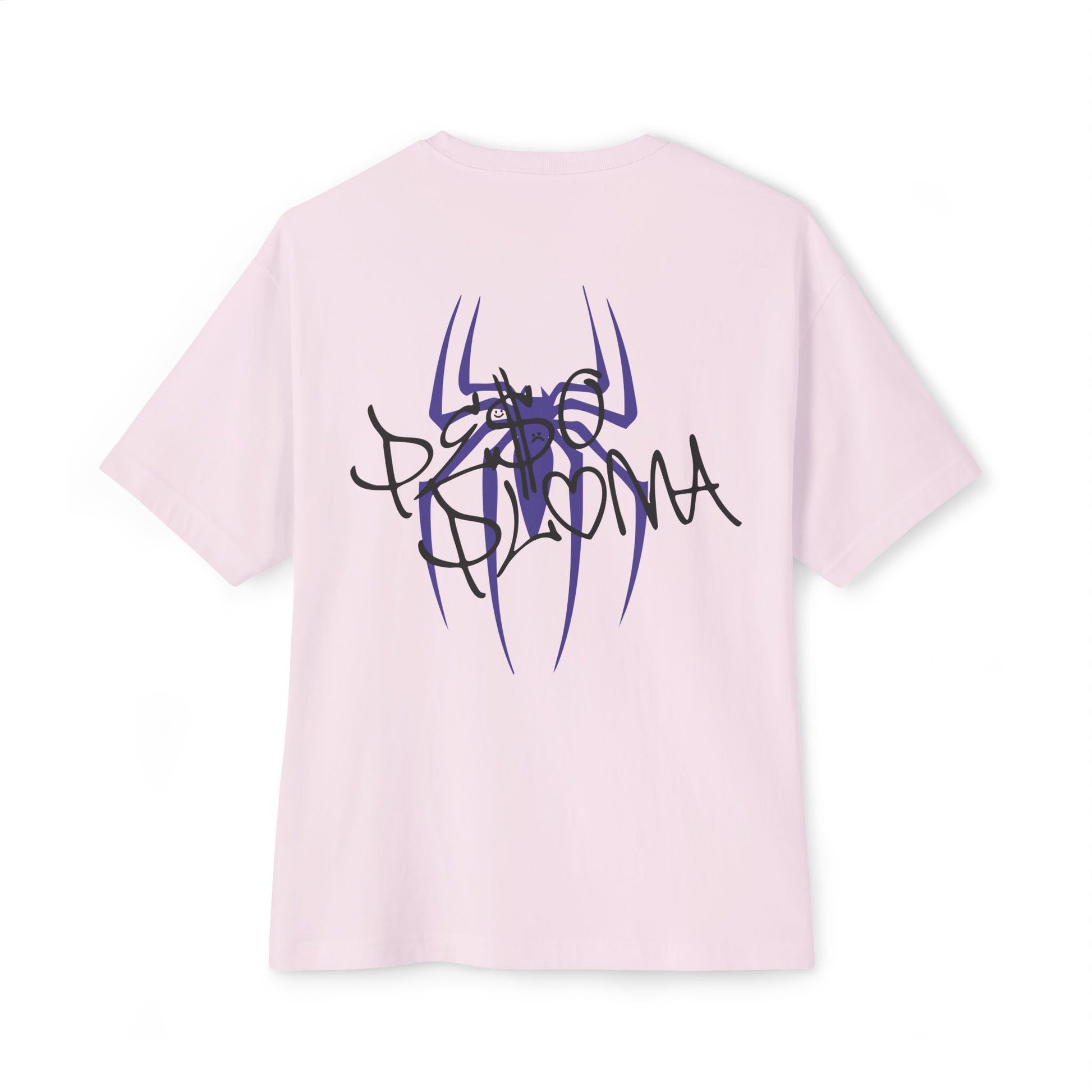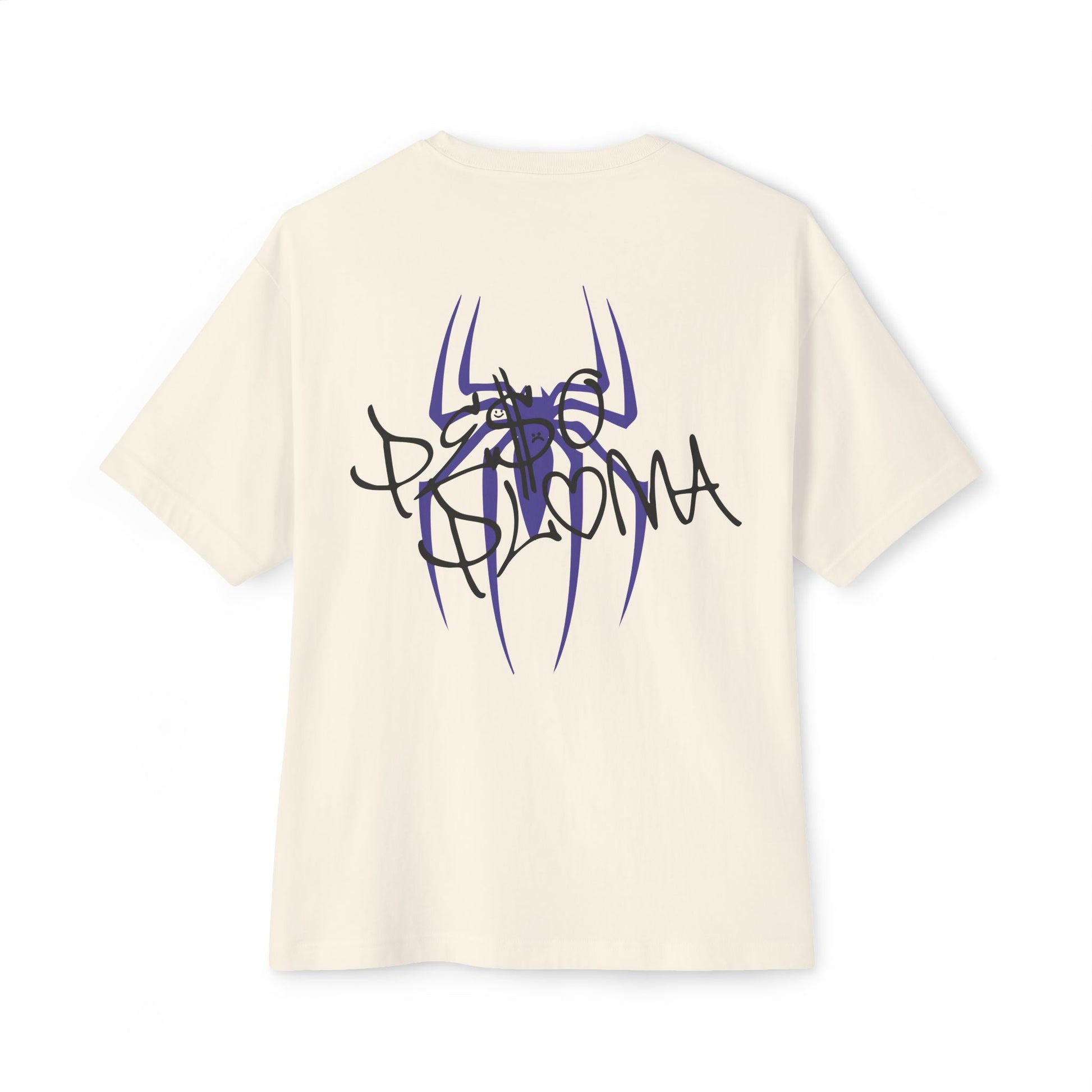 A minimal PP logo on the front chest keeps the design clean and understated, while the back features a striking hand-drawn spider intertwined with PP lettering — raw, expressive artwork that adds a personal, street-ready edge. The dropped shoulders and relaxed silhouette give a modern, off-duty vibe, allowing the tee to pair effortlessly with cargos, wide-leg denim, or layered long sleeves.